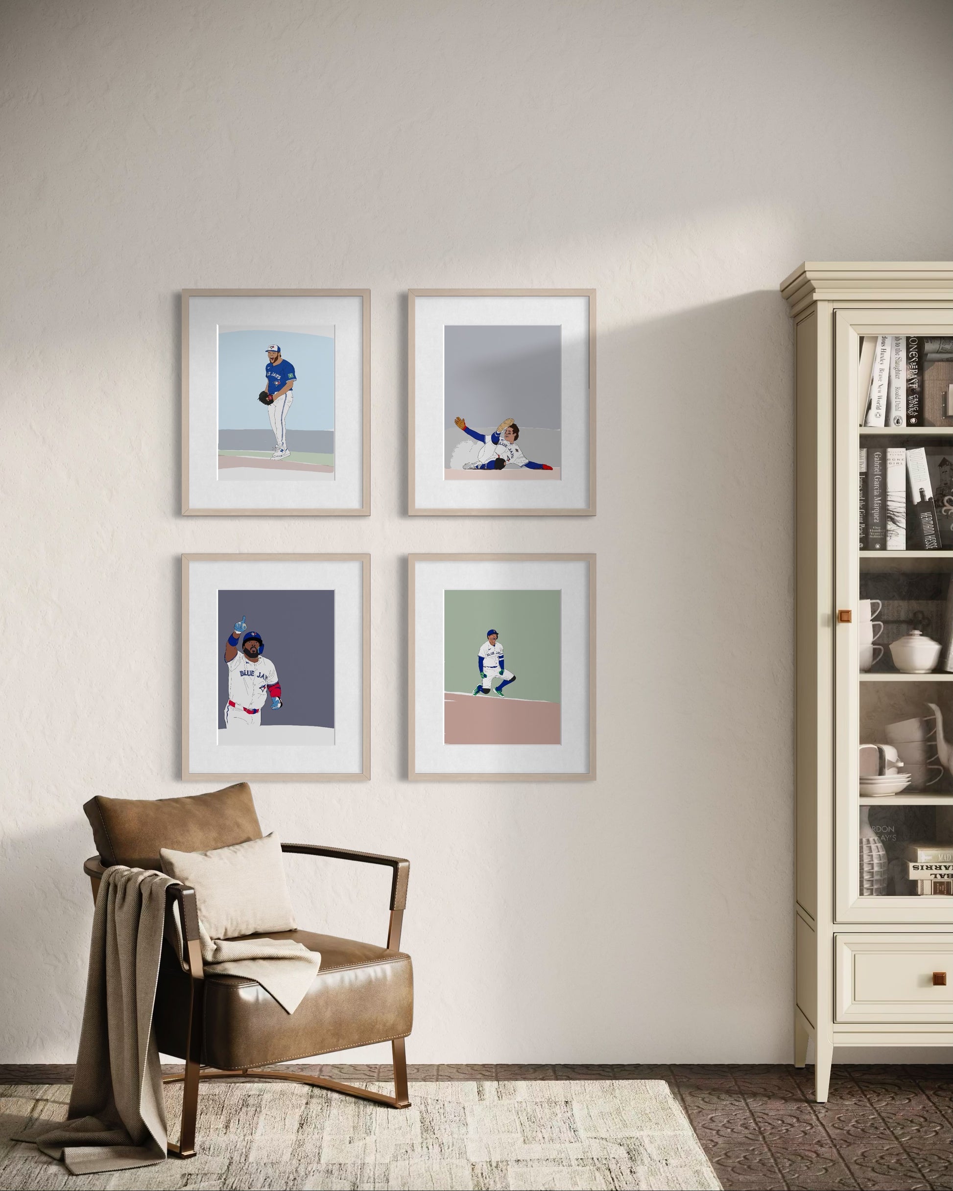 A rendering of Ernie Clement sliding into home base to score a run in Game 7 of the 2026 world series against the LA Dodgers