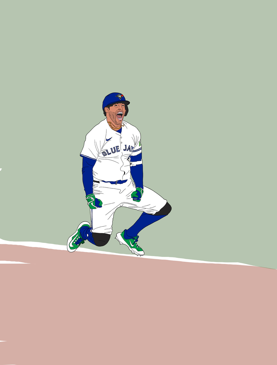 A rendering of George Springer as he rounded the bases to score with a three run homerun during game 7 of the series against the Seattle Mariners. The homerun will be forever referred to as the "Springer Dinger"